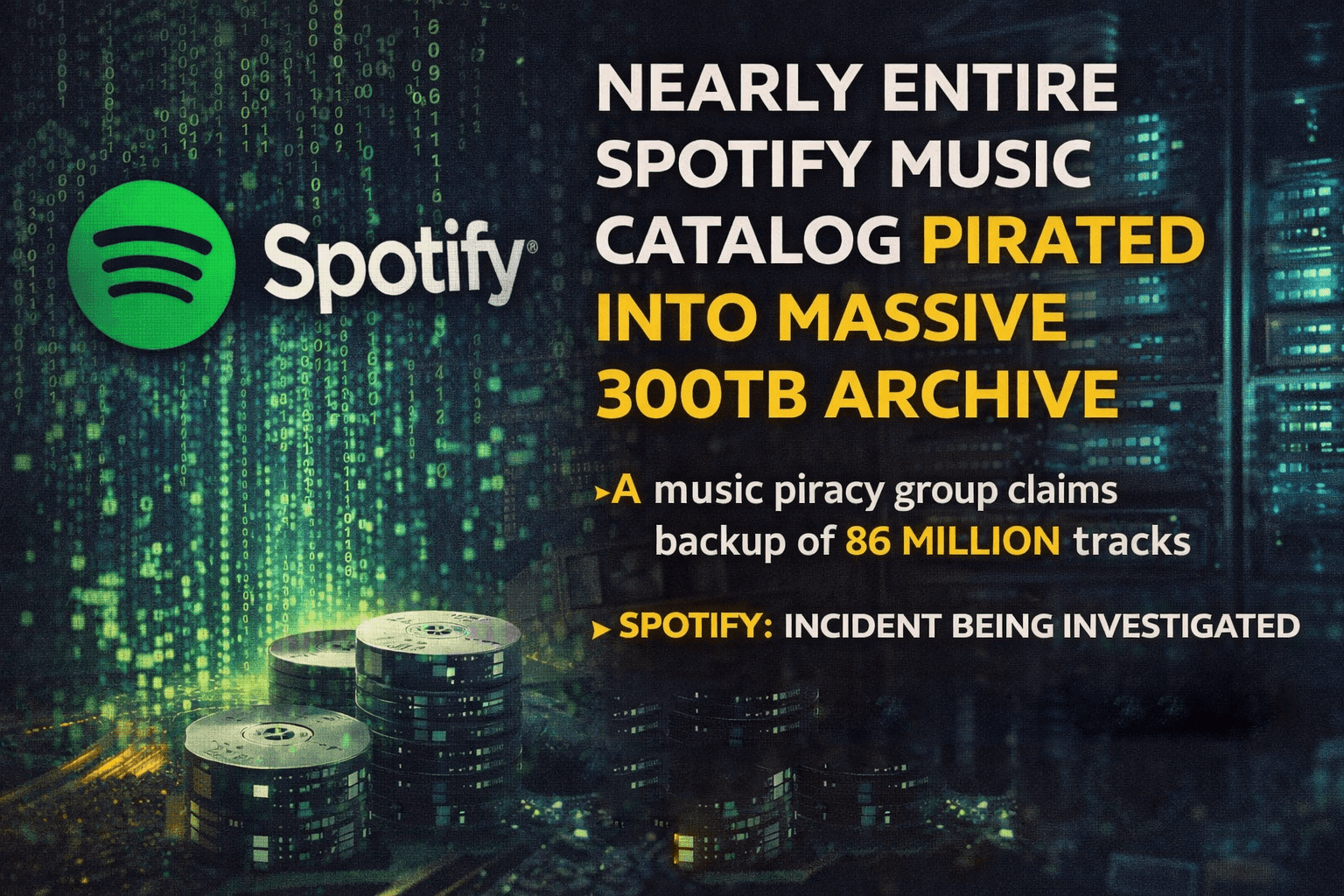 Nearly Entire Spotify Music Catalog Allegedly Pirated Into Massive 300TB Archive